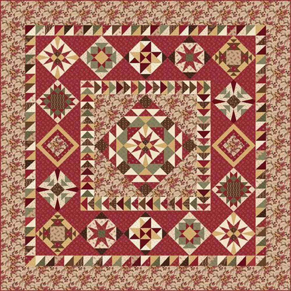 Mother daughter duo Carrie Quinn and Katie Solberg combine their favorite print motifs and warm color palettes to bring you the Arabella Block of the Month. Arabella is the name of the ship that their ancestors sailed from England to New England in 1630. Their ancestor, the Reverend George Phillips, led a group of English settlers up the Charles River to settle in what is now Watertown, Massachusetts, where we went on to be the founder of the Watertown Congregational Church. This project is a classic medallion style showcasing the beautiful prints in the collection. The sampler blocks feature simple units that are suitable for beginners and will still challenge and delight the more advanced quilter. Each month for 12 months, you’ll receive the pattern and all the fabrics needed for that section of the quilt. Available separately, we offer a coordinating 22-piece fat quarter pack with Arabella fabrics that will be great to have on hand in case of any miscuts during construction. Backing is also available separately, 8 yards of a 44″ wide or 3 yards of a 108″ is recommended.