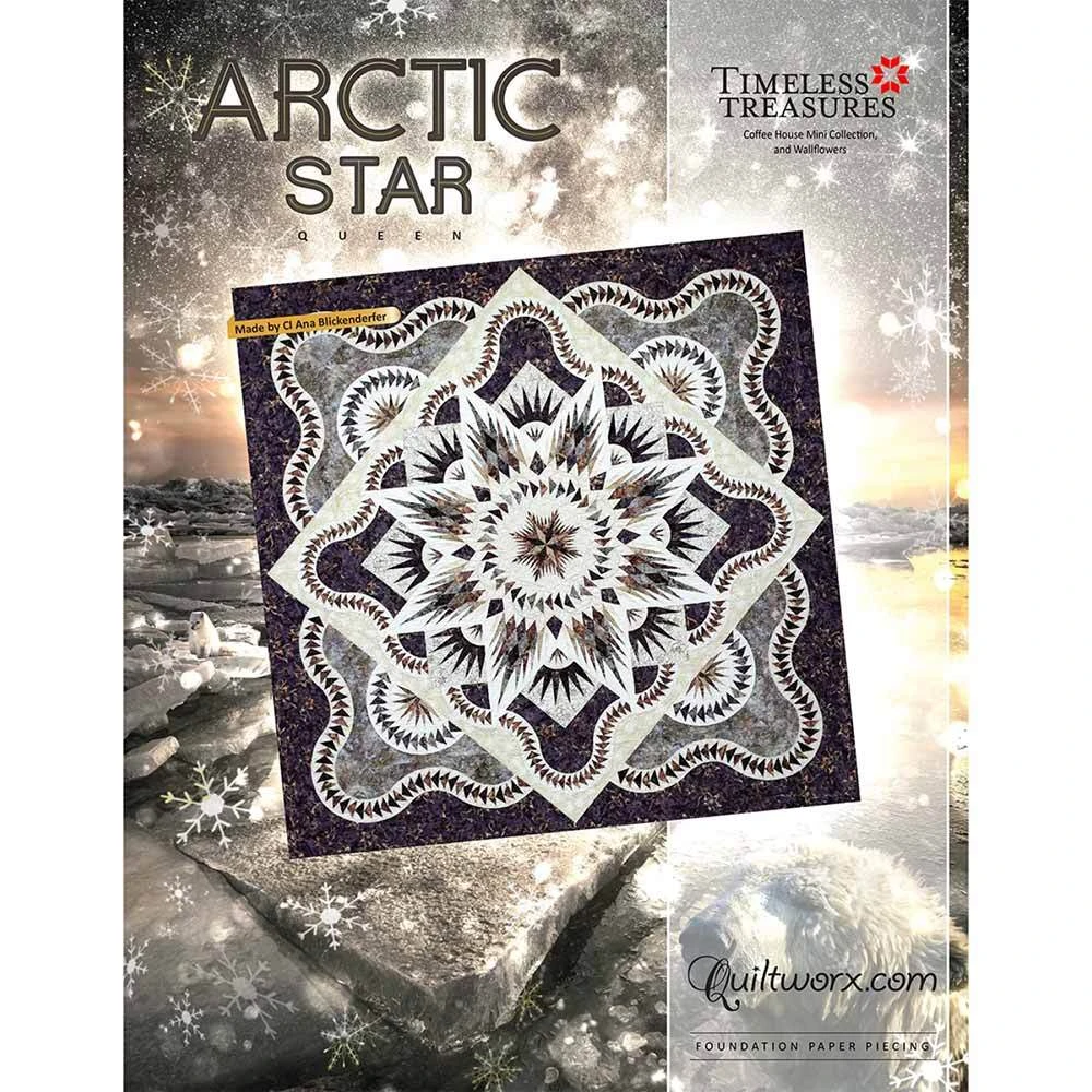 Designed by Judy and Bradley Niemeyer of Quiltworx, the Arctic Star pattern has an advanced skill level and includes all the foundation papers needed. Finished size is 99″ x 99″.