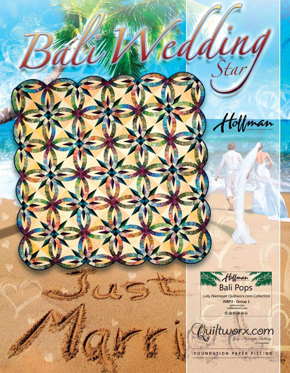 Bali Wedding Star is a foundation paper pieced pattern. The design incorporates strip piecing to complete the foundation piecing on the arcs, stars with floating points, and Template Layout Sheets to speed up the cutting process for the stars and background pieces. Trim the units with the Creative Grids (Part #CGRDW). Finished Size: 80 inches x 80 inches. Fabric not included.