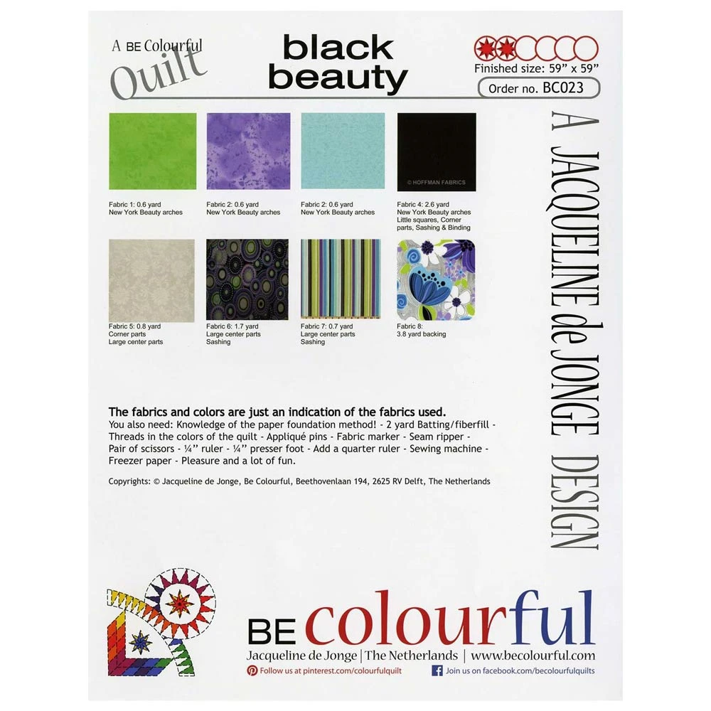 Be the first to review “Black Beauty Paper Pieced Quilt Pattern By Jacqueline De Jong” Cancel reply