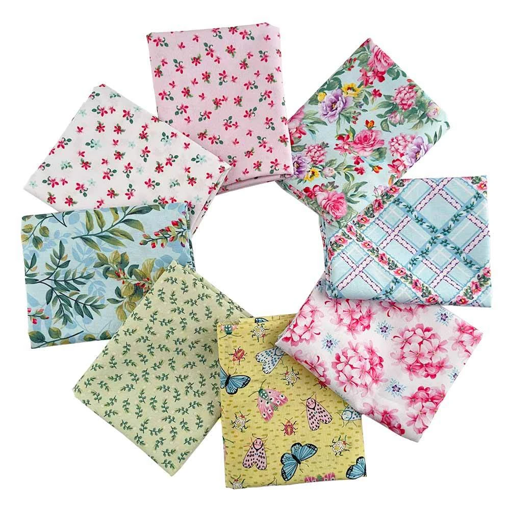 A lovely mix of florals, foliage and butterflies all in a color palette of pink, blue, teal and green are featured in the Chintzy 8-Piece 1/2 Yard Bundle.