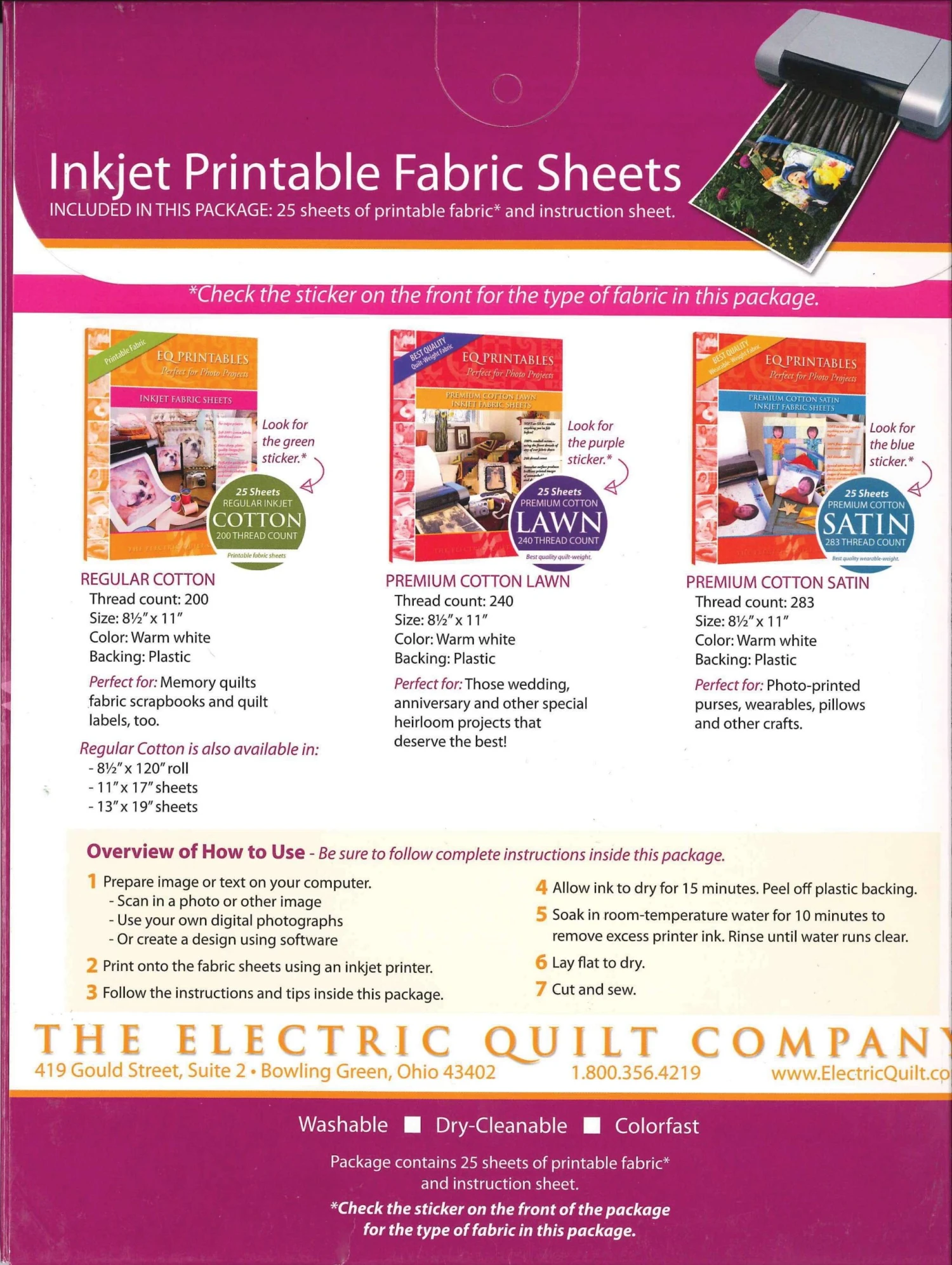 Thread count: 200 – fabric for inkjet printers. The warm white fabric makes photo-complexions glow. Perfect for memory quilts, fabric scrapbooks and quilt labels.