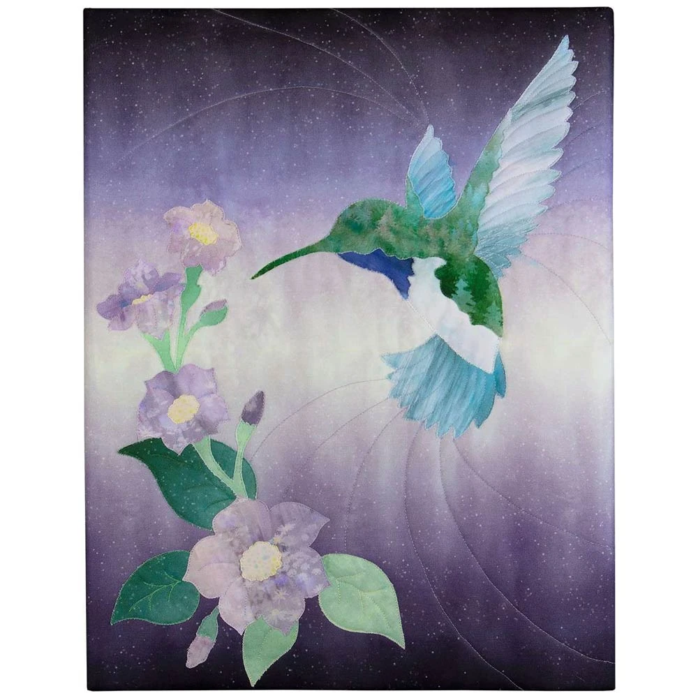 Simple and beautiful beginner applique pattern. Finished quilt block measures 14in x 18in, intended to be mounted on canvas. Made with Painted Forest digital fabrics by McKenna Ryan and other Hoffman fabrics.