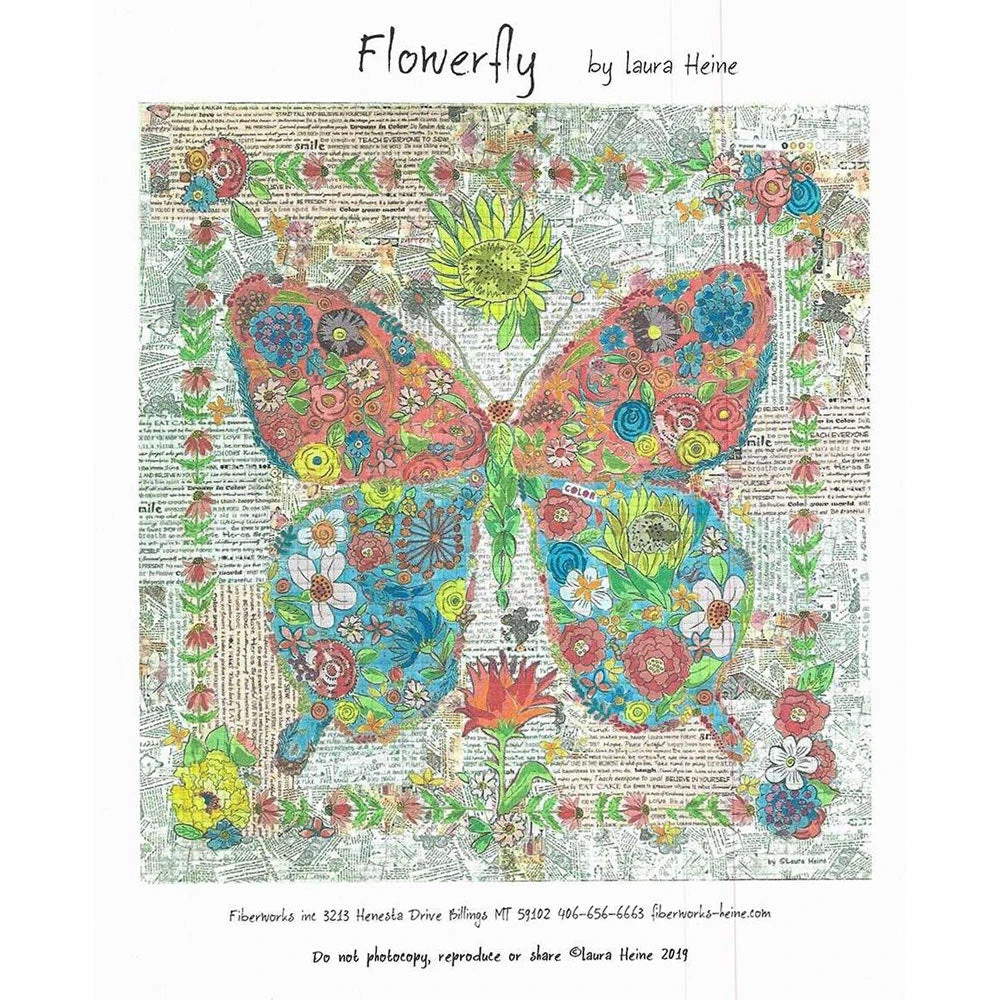 Flowerfly…Butterfly Collage Pattern by Laura Heine. Pattern includes color step by step instructions and full size pattern, size 33in x 35in.
