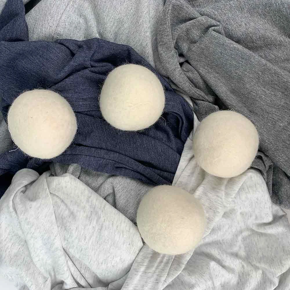 Toss these wool balls into the dryer to reduce wrinkles, reduce drying time, and soften fabric without chemicals or scents. Set of four balls comes in a cotton drawstring bag. From the Gypsy Quilter™.