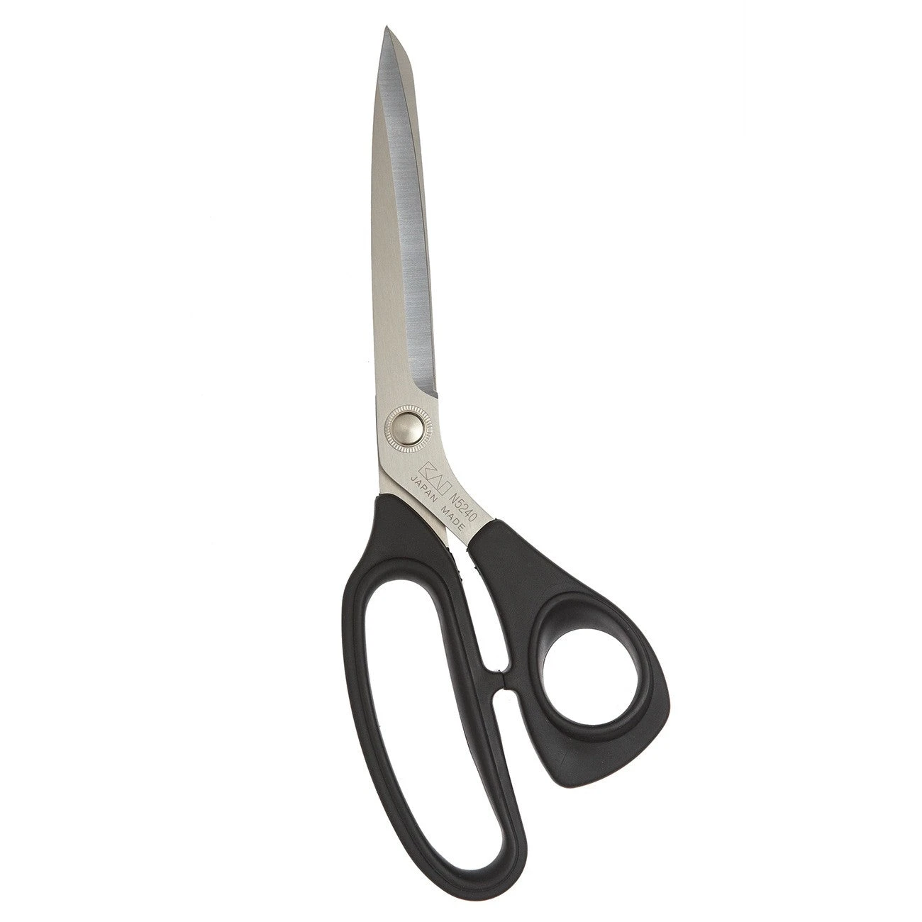 The Kai N5240: 9- 1/2 in. Dressmaking Shears have a large handle grip and an extended blade length. The longer blade length is popular for cutting large quantities of fabric while still offering excellent cutting power, all the way to the tip.