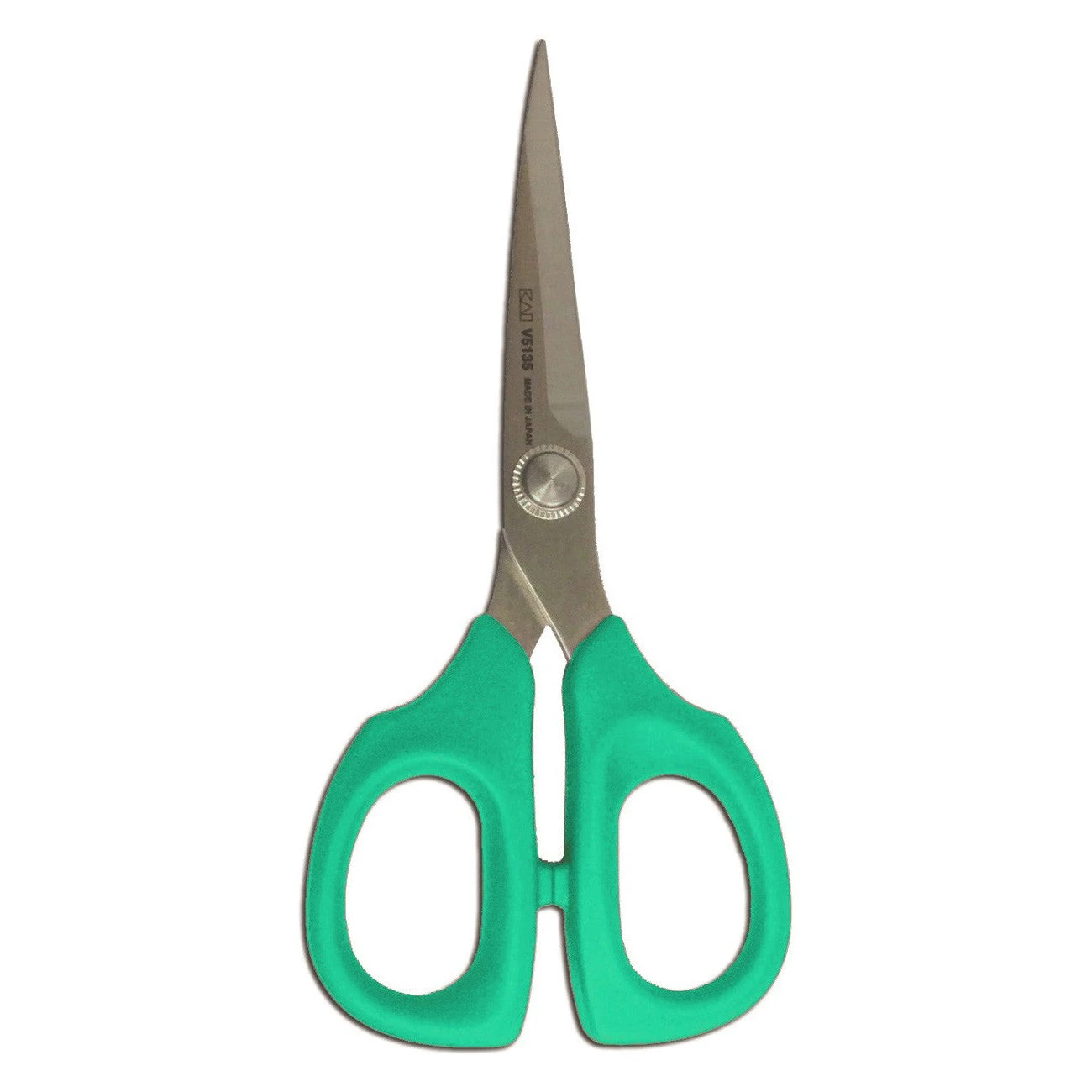 The KAI V5135T – 5 1/2″ scissor has ergonomically soft handles which allow fatigue-free cutting on all types of fabric. Cuts multiple layers of denim with ease while trimming cottons without any fabric slippage. The KAI V5135T has the standard 5000 series blades. Quilters love this size for trimming “dog ears” and clipping threads when chain piecing. This smooth, comfortable scissor is perfect in your sewing kit for take along projects and sewing classes. Comes complete with a blade cap. * Color: Teal Handle * Made of: Metal and Plastic * Use: Scissors * Size: 5-1/2in * Weight: 1.3oz * Included: One Pair
