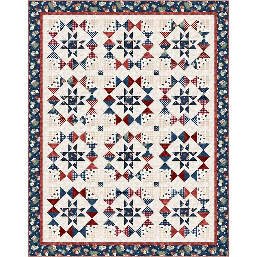 Let Freedom Ring with this red, white and blue project designed by Wendy Sheppard. Kit includes pattern and all the fabrics needed for the top and binding from the Farmhouse Americana collection by Cindy Jacobs. Finished size is 69″ x 89″. Backing available separately, 5-1/2 yards x 44″ wide recommended.