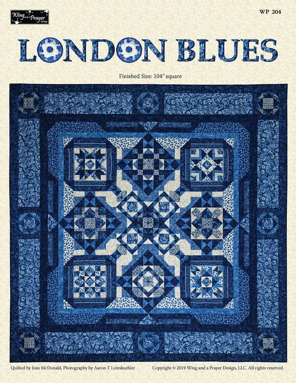 The 104” square London Blues quilt is written for a Saturday Sampler or a premium Block of the Month program format. The quilt uses the London Blues collection from Timeless Treasures, featuring 12 printed cottons, that meld the aesthetics of turn of the century Victorian England and vintage Americana. Inspired by English Victorian era Flow Blue fine china and American antique tin tiles, the collection features a rich palette of creams, blues, and deep navy, imparting a classic vintage feel with a modern twist. Pattern Only.