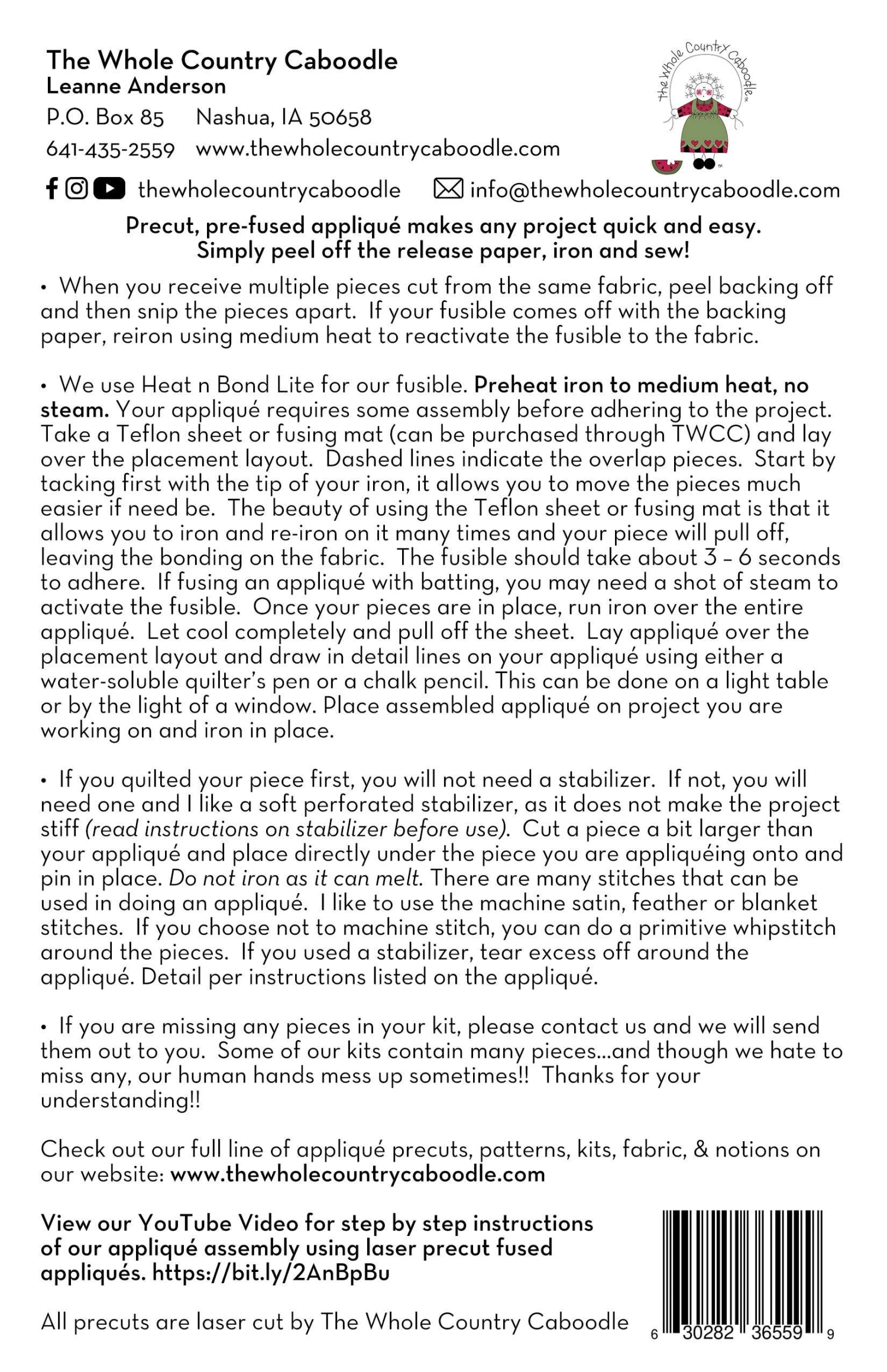 Includes precut fused gnome appliques, hearts & finished drawing for assembling appliques.