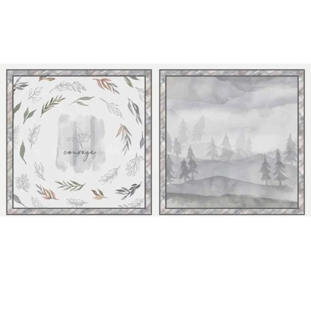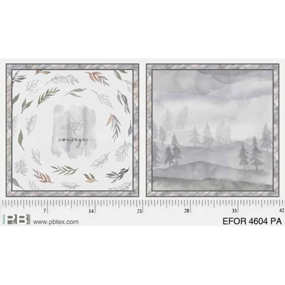 Designed by Jetty Home for P&B Textiles, the 21″ x 24″ Courage Pillow Panel features foliage and a tree-landscape scene in a soft watercolor-like palette.