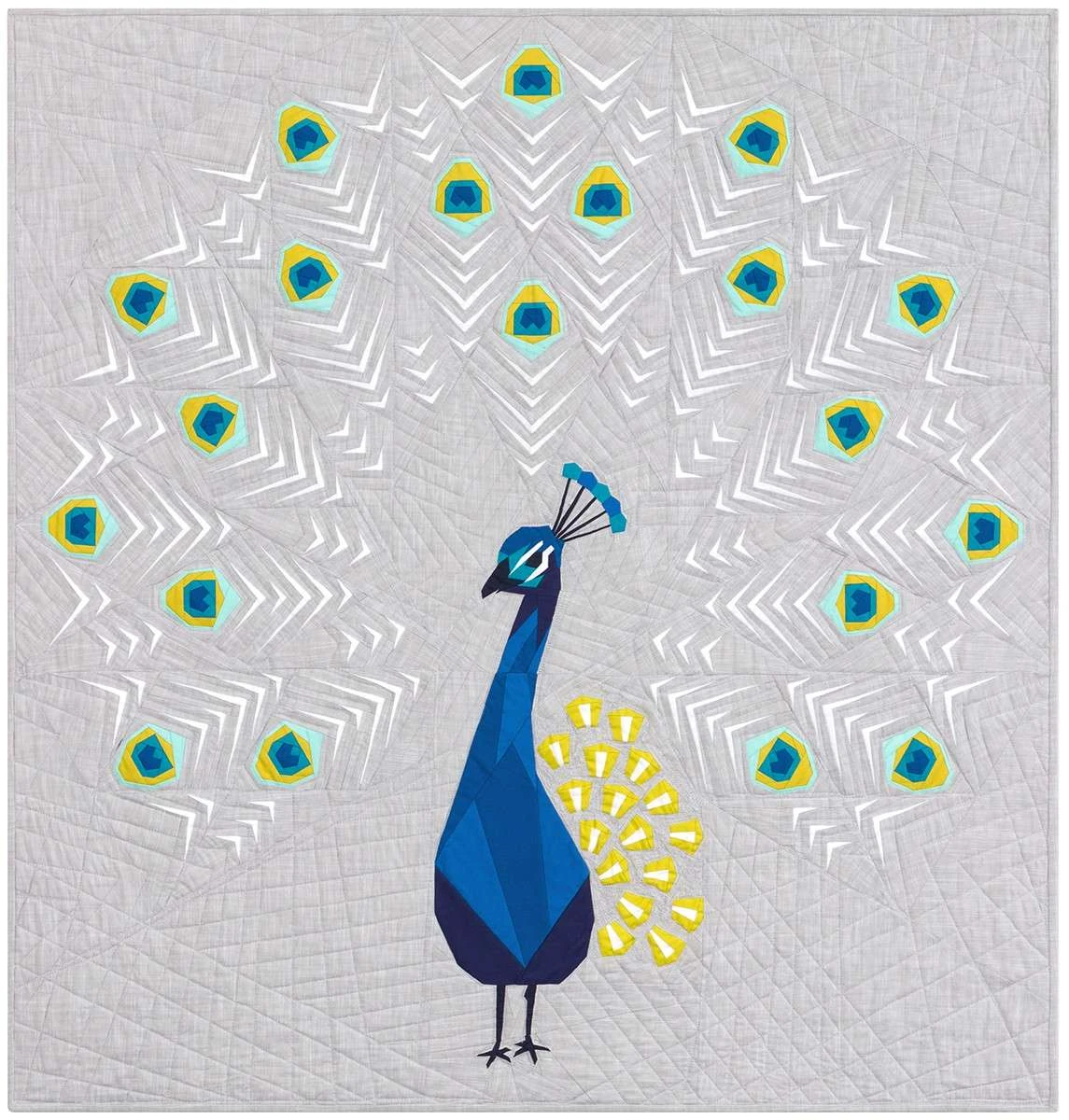 The Peacock is an English Paper Piecing project. Finished Size: 20 inches x 20 inches. Fabric not included.