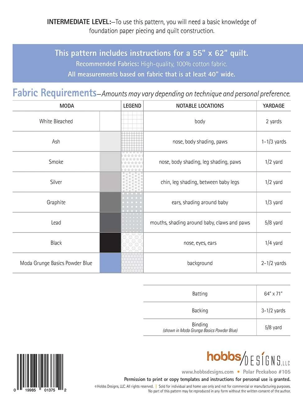Oh Baby Baby! Polar Peekaboo is a pattern for a foundation paper pieced project. The finished quilt measures 55″ x 62″.