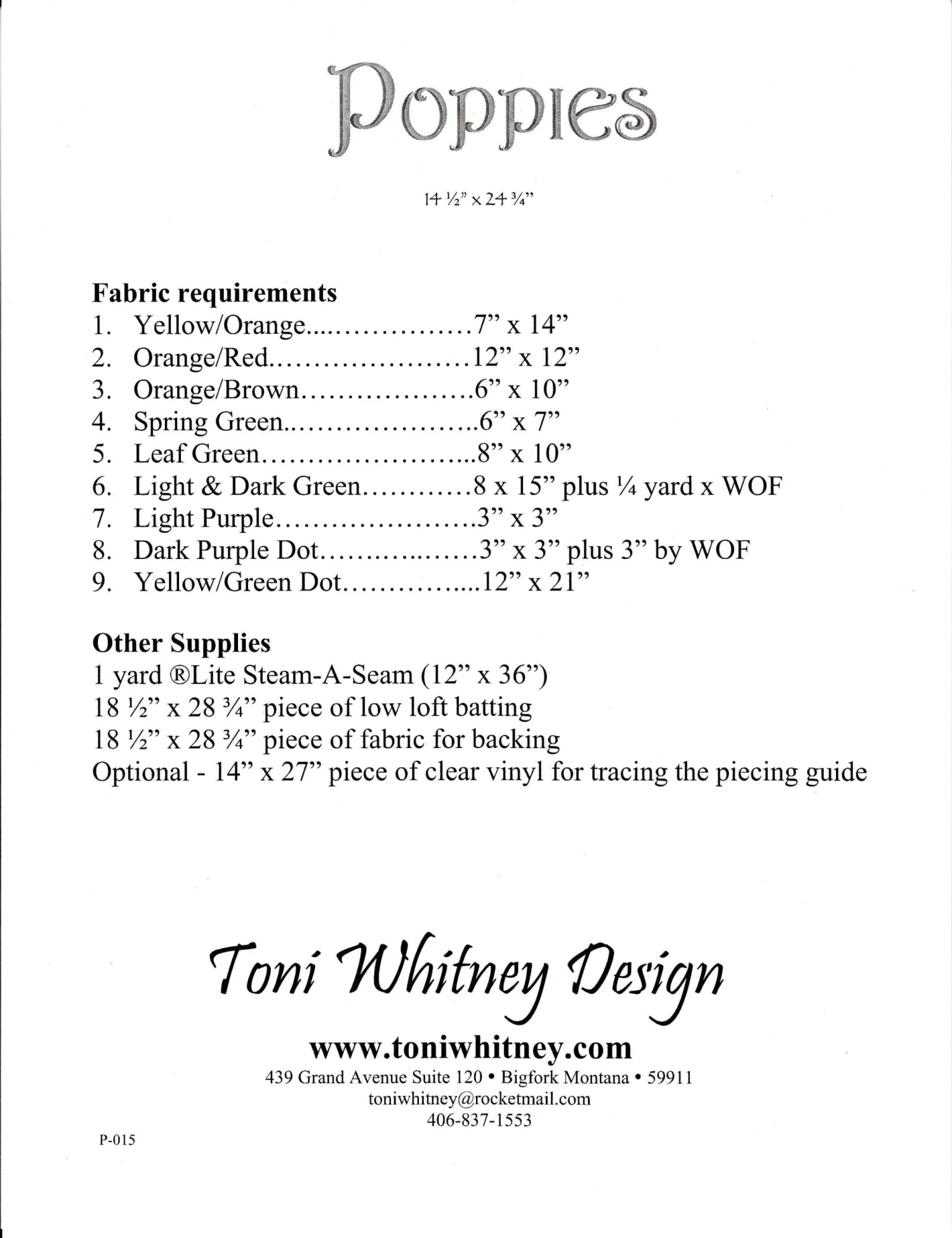 Be the first to review “Poppies Quilt Pattern By Toni Whitney” Cancel reply