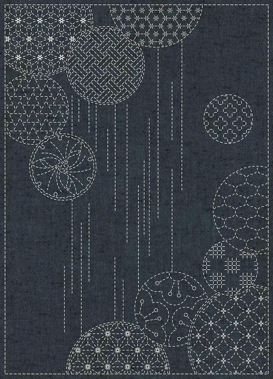 Sashiko design hand-printed with water-soluble ink on soft yarn-dyed nep fabric.