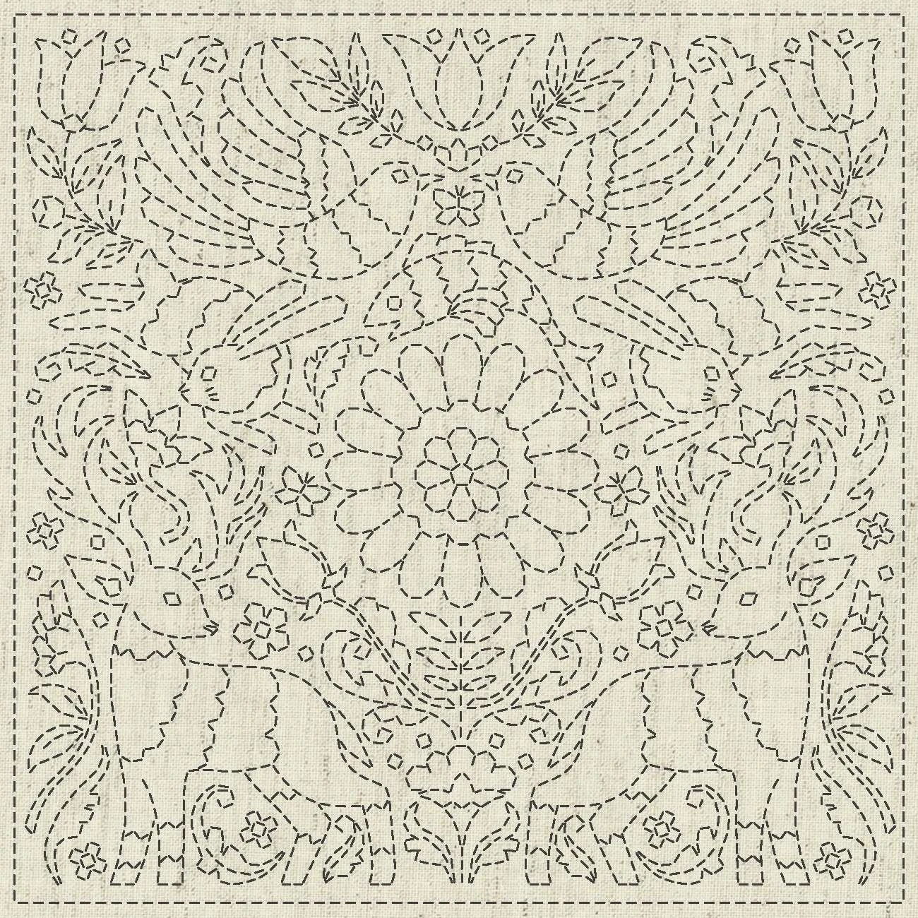 Sashiko pattern hand-printed with water-soluble ink on soft greige slub. Designed by Ky Fujita for QH Textiles. English instructions included.