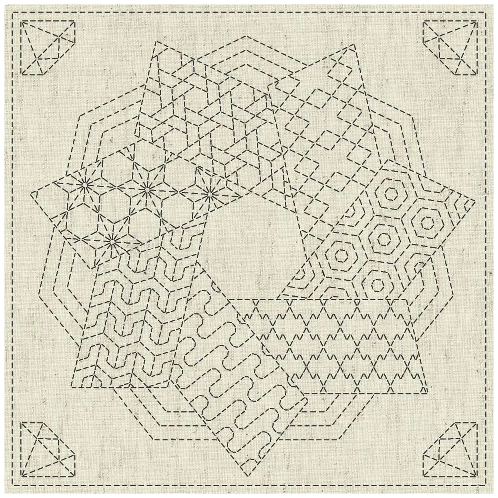 Sashiko pattern hand-printed with water-soluble ink on soft greige slub. Designed by Ky Fujita for QH Textiles. English instructions included.