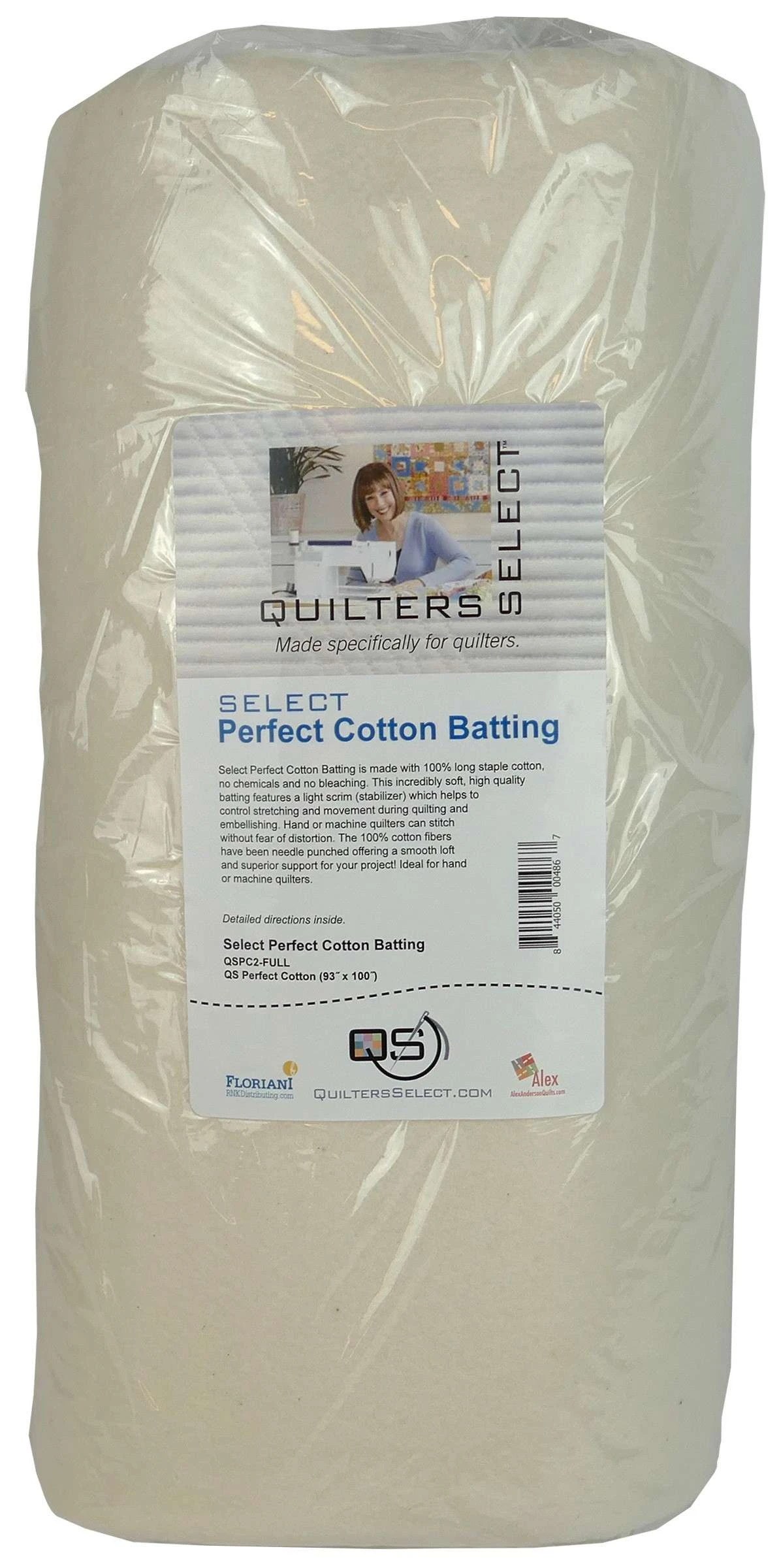 Select Perfect Cotton Batting is made using no chemicals and no bleaching. This incredibly soft, high quality batting features a light scrim (foundation) which helps to control stretching and movement during quilting and embellishing. Hand or machine quilters can stitch without fear of distortion. The 100% cotton fibers have been needle punched offering a smooth loft and superior support for your projects. Ideal for hand or machine quilters. * Made of: Cotton * Contains Scrim * Needlepunched * Loft: Medium