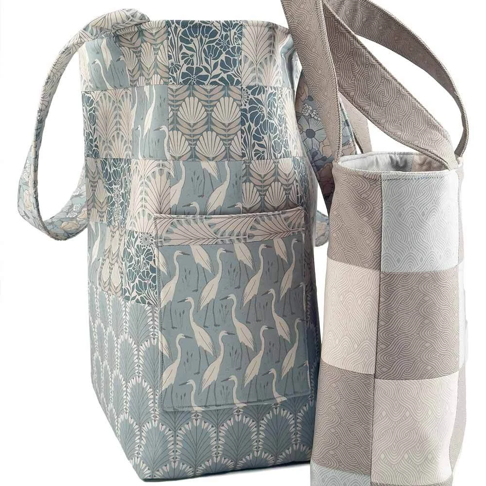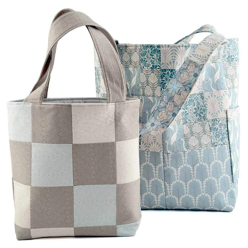 A tote bag set featuring the soft color palette and coastal themed designs of Amy MacCready’s Coastal Calm collection for Cloud9. The Shop in Style Tote Bag Set is a Keepsake Quick Kit and includes the pattern along with 12” x 43” Strips (10 pieces). You’ll just need to provide 2 yards fusible fleece (folded—43” wide), 3 yards single ply medium weight fusible interfacing; we like Pellon SF 101 Shapeflex, 1 sheet of plastic mesh canvas (available on Amazon) and thread to match. Finished bag sizes are 14 x 12” and 19 x 16” (excluding handles).