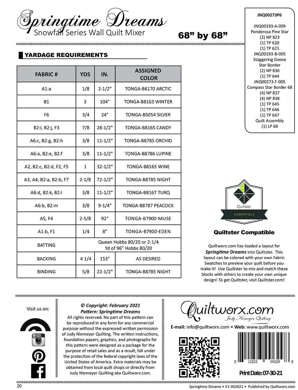 Pattern Includes: Instructions, Cover Sheet, Yardage Information, Foundation Papers. Size 68 x 68. This is a limited pattern with only 500 being printed.