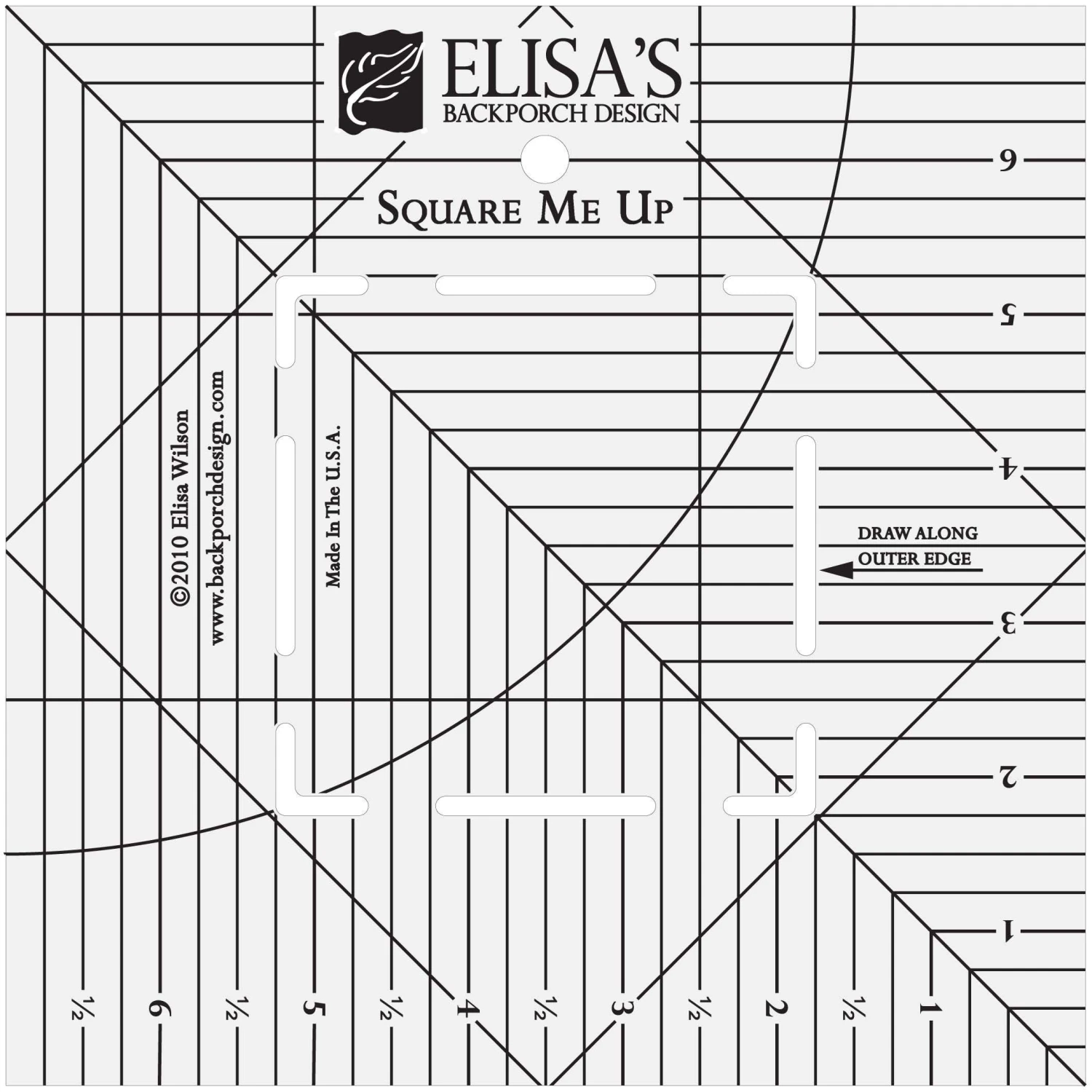 Square Me Up Ruler uses 10in squares to make 4in finished size half-square triangles. Use prepackaged 10in squares or cut four 10in squares from 1/3 yard of fabric.