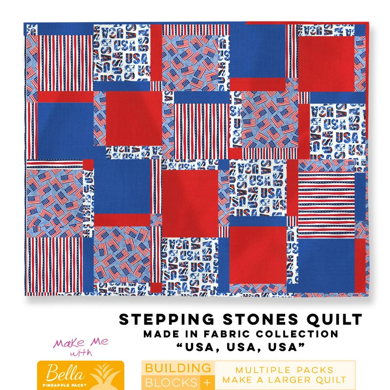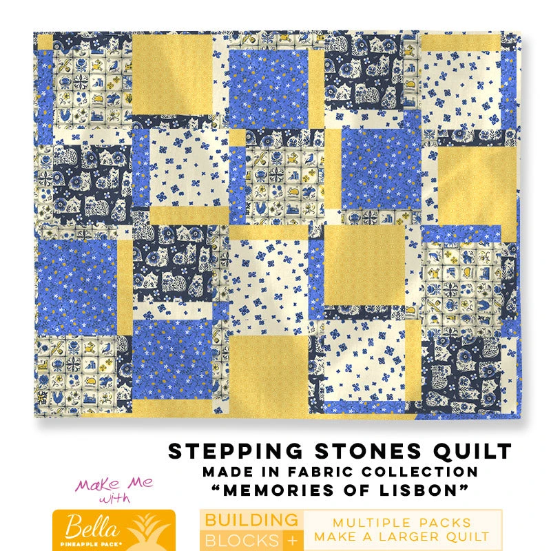 The Stepping Stones Quilt pattern is part of our Building Blocks program, so you can add more quilt blocks with additional fabric packs: