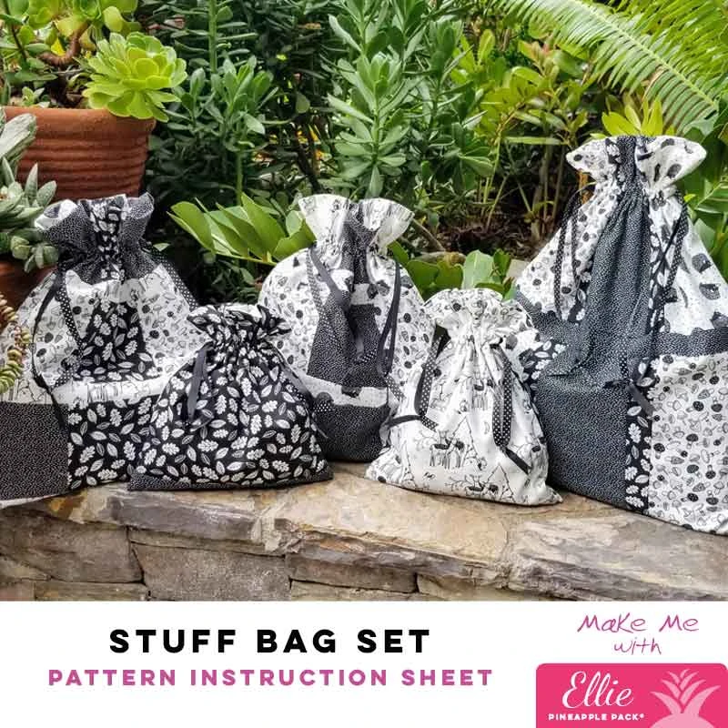Make these 5 bags to put all your sewing, kids toys, or any stuff in! Organize your items in pretty bags of different sizes with this Ellie Pattern.