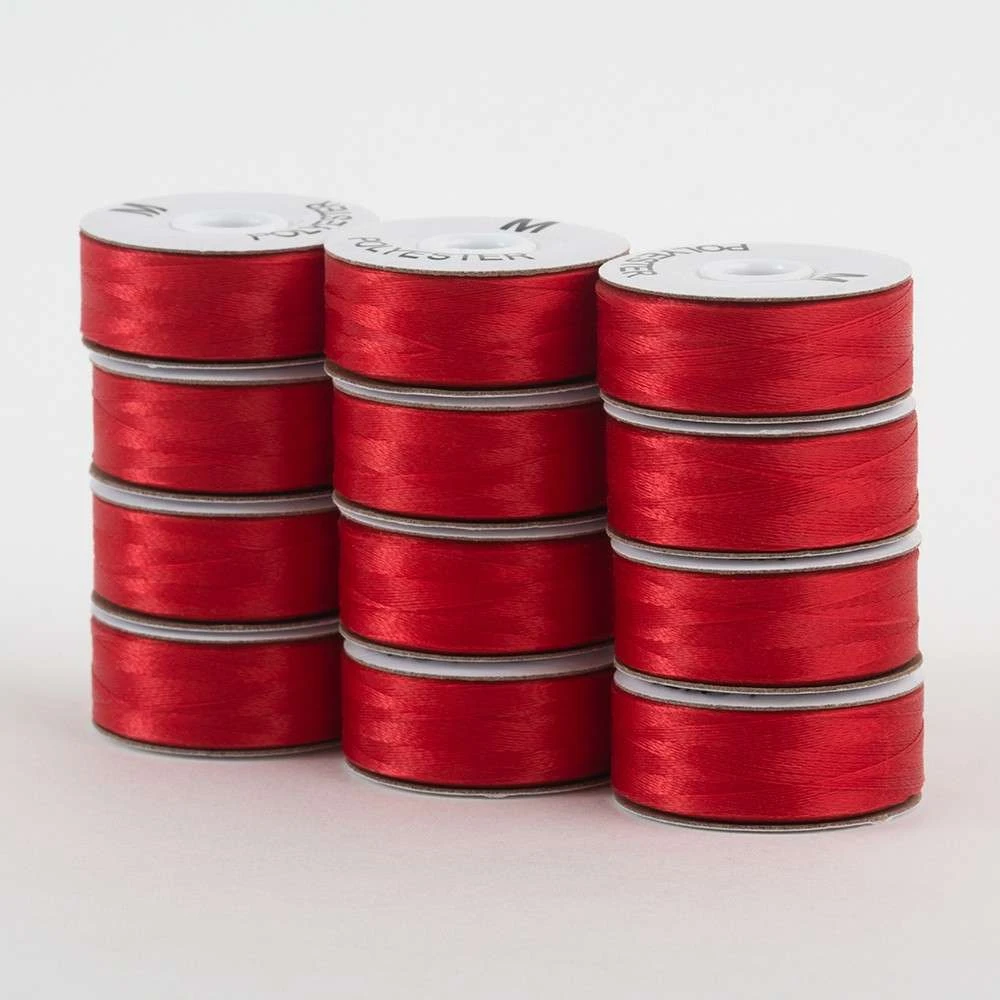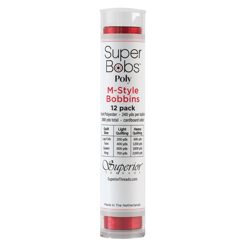 Tube of 12 cardboard sided bobbins. Designed for applique, bobbin thread, embroidery, and quilting. M Style Bobbins