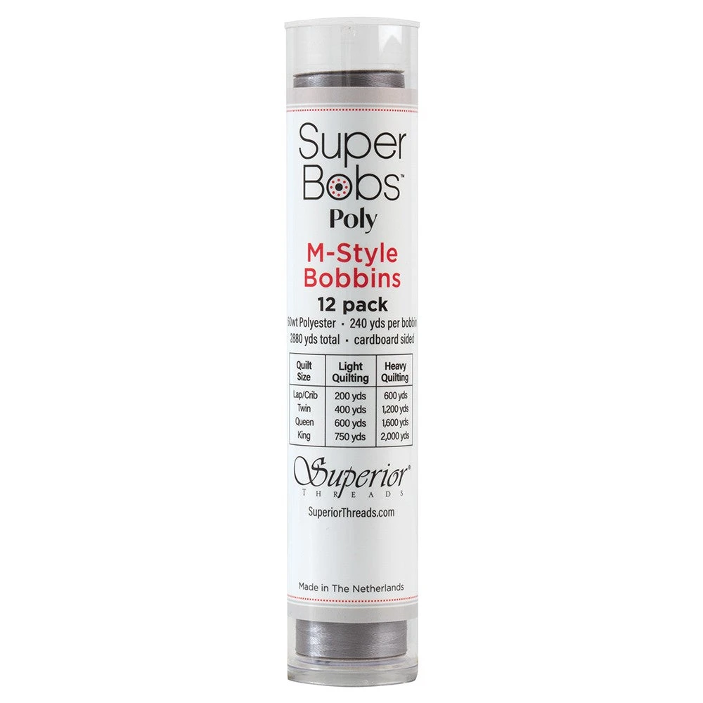 Tube of 12 cardboard sided bobbins. Designed for applique, bobbin thread, embroidery, and quilting. M Style Bobbins