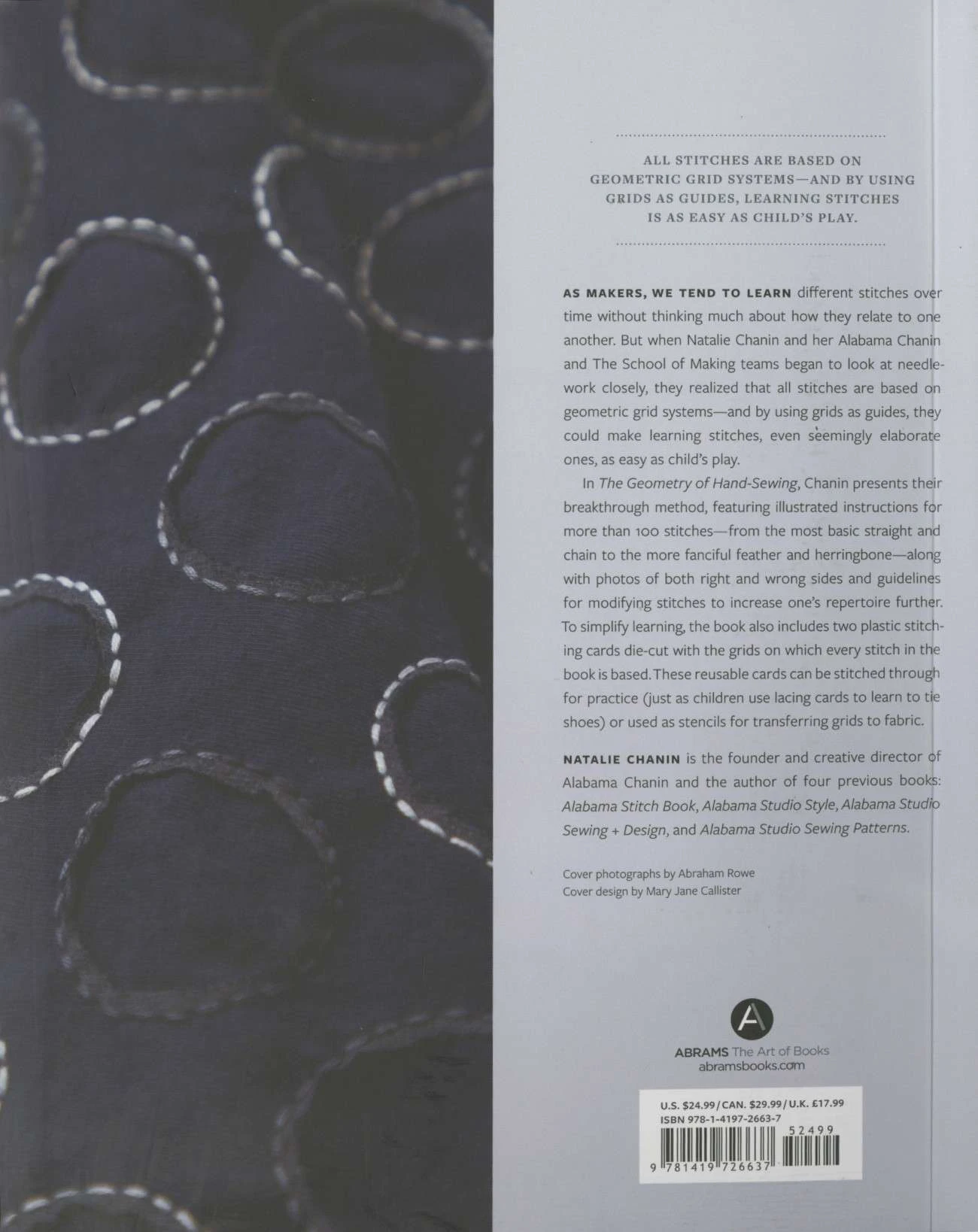 As makers, we tend to learn different stitches over time without thinking much about how they relate to one another. When the designer teams began to look at needlework closely they realized all stitches are based on geometric grid systems and by using grids as guides they could make learning stitches, even seemingly elaborate ones, as easy as child’s play. The Geometry of Hand Sewing presents their breakthrough method featuring illustrated instructions (both for right- and left-handed stitchers) for more than 100 stitches. From the most basic straight and chain to the more fanciful feather and herringbone there are photos of both right and wrong sides, and guidelines for modifying stitches to increase ones repertoire further. To simplify learning, the book also includes 2 plastic stitching cards die-cut with the grids on which every stitch in the book is based. These reusable cards can be stitched through for practicing (just as children use lacing cards to learn to tie shoes) or used as stencils for transferring grids to fabric. 144 pages.