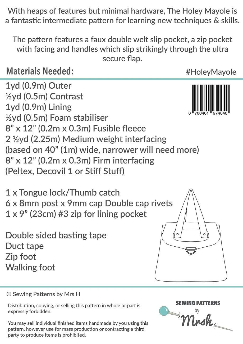 With heaps of features but minimal hardware, The Holey Mayole is a fantastic intermediate pattern for learning new techniques & skills. The pattern features a faux double welt slip pocket, a zip pocket with facing and handles which slip strikingly through the ultra secure flap.