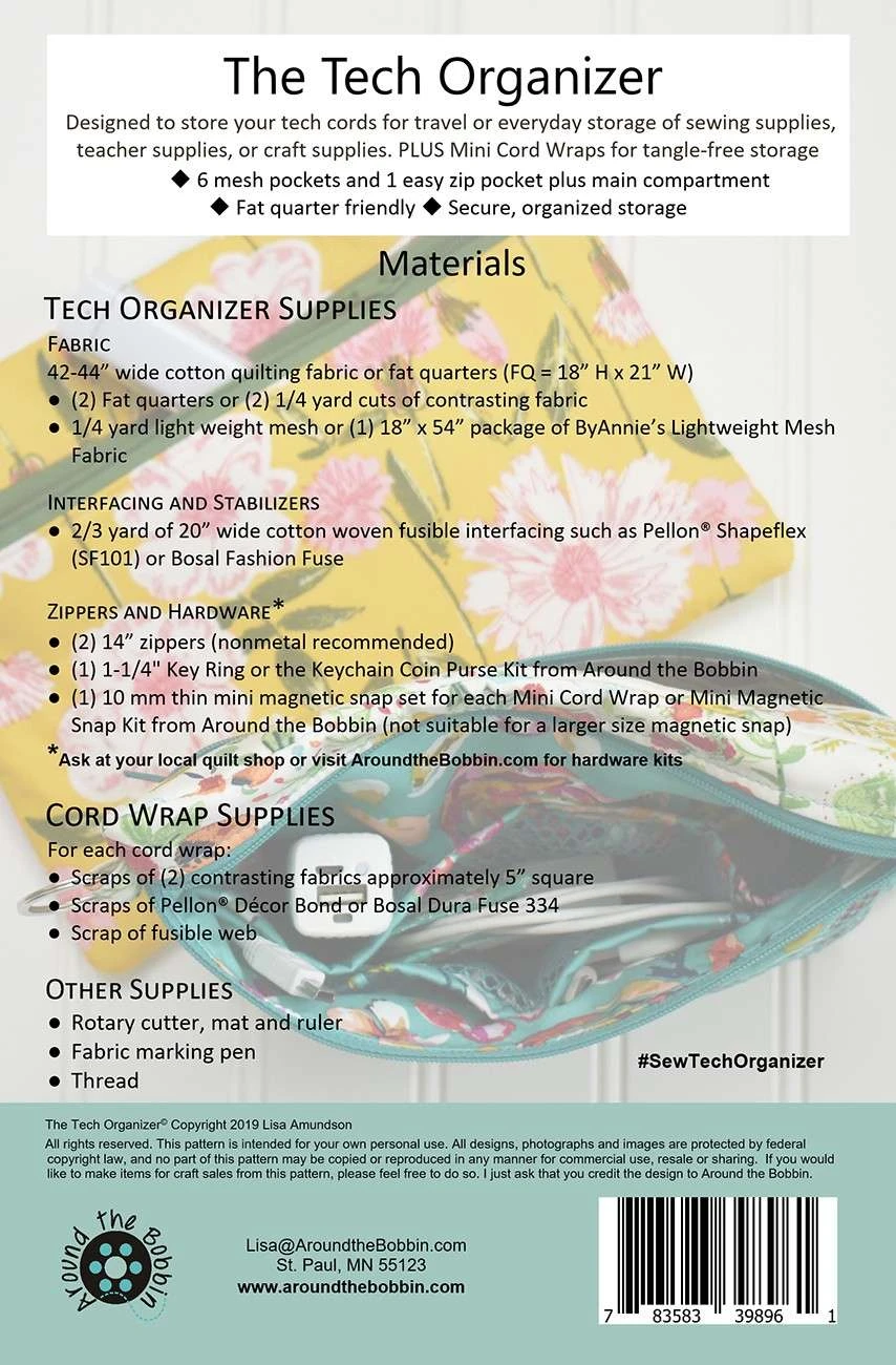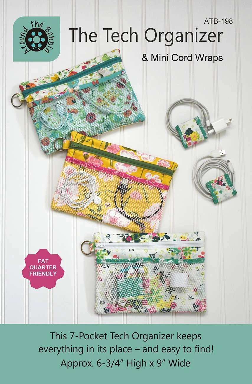 This fat quarter friendly Tech Organizer will take away the headache of lost and tangled cords. With 6 slip mesh pockets, 1 zip pocket, and the main compartment, there is plenty of room for ear buds, phone cords, battery charger and cord, and much more. Clip the organizer into a larger tote for added security. Easy zip pocket technique. The keychain hardware kit pairs well with this project. The Tech Organizer is approximately 6-3/4 in x 9 in BONUS: Make the Mini Cord Wraps to keep your cords tangle free. Fun and addicting, these cord wraps will make your life easier. Cord wraps are approx. 2 in square. Mini magnetic snap kits are available. Hardware kits are available.