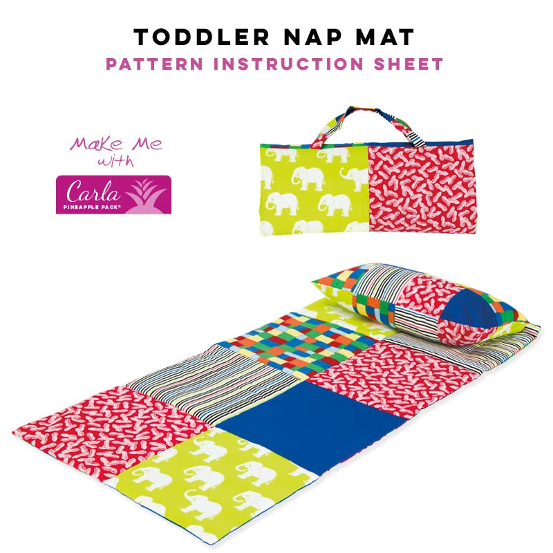 All set for a playdate or daycare, your toddler can carry their own rest pad wherever they go. One Carla Pineapple Pack makes a Toddler Nap Mat that opens out with a matching pillow tucked into a pillowcase flap. Remove pillow for washing.