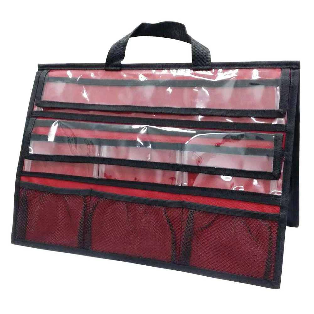 Versatile pockets on both sides keep tools: rotary cutter, scissors, small scissors, various rulers, seam ripper, marking pencil, embellishment & needle craft, thread, bobbins, needle cases, rotary blade cases, peep hole, and more etc.