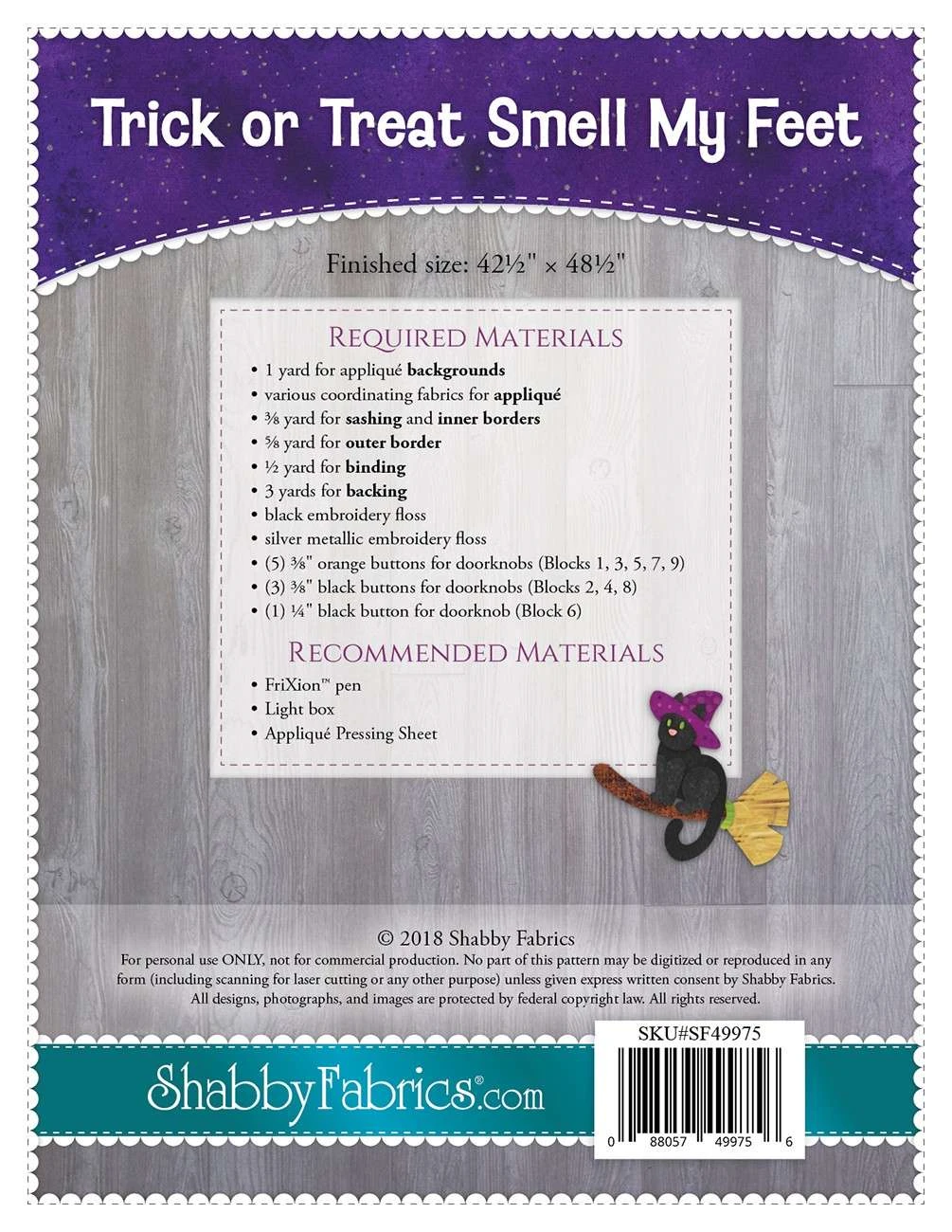 Classically costumed trick-or-treaters are collecting goodies through a colorful, quirky neighborhood on Hallowen night! Appliqued blocks and borders! Finishes to 42½” × 48½”