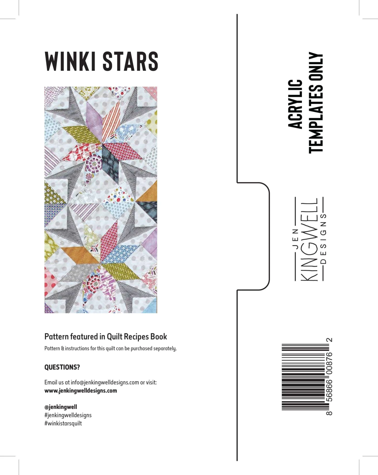 Winki Stars quilt is featured in Jen’s book “Quilt Recipes” and is one of the projects in the book that has an Acrylic Template Only Set (ATO). The 5 other template sets from the book are Wensleydale, Diamond Exchange, Point Addis, Tomar and Chopin Cushion. Please note ATOs do not include instructions these are only available in the Quilt Recipe book.